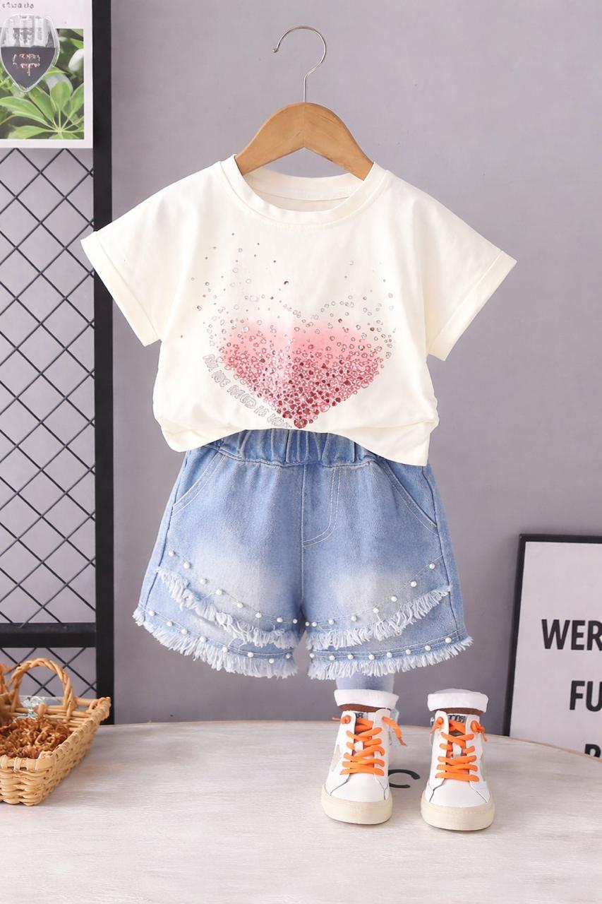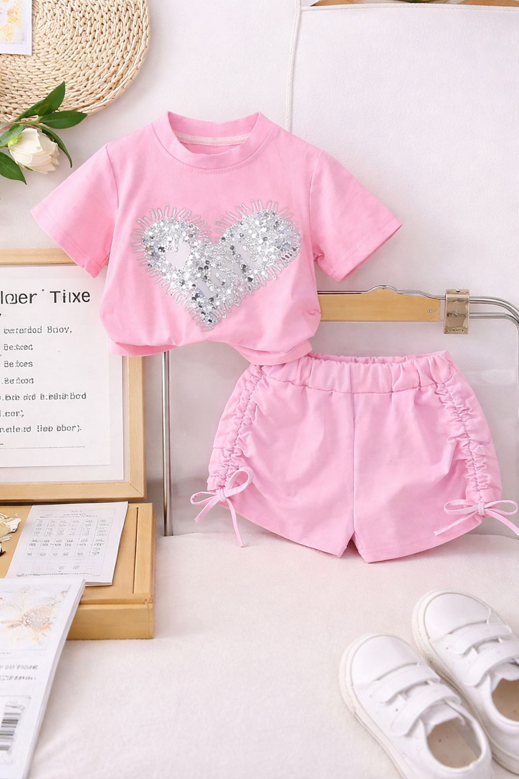 Girls' Pink Sequence Heart 2-Piece Co-ord Set [GCS-4956] (2-7 Years)