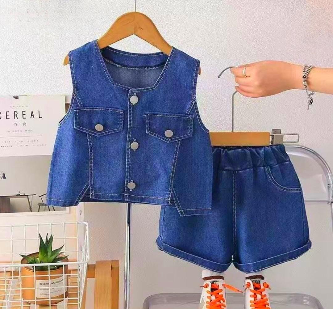 Girl's Denim Dark Blue Co-Ord Set [GCS-4994] (3-8 Years)