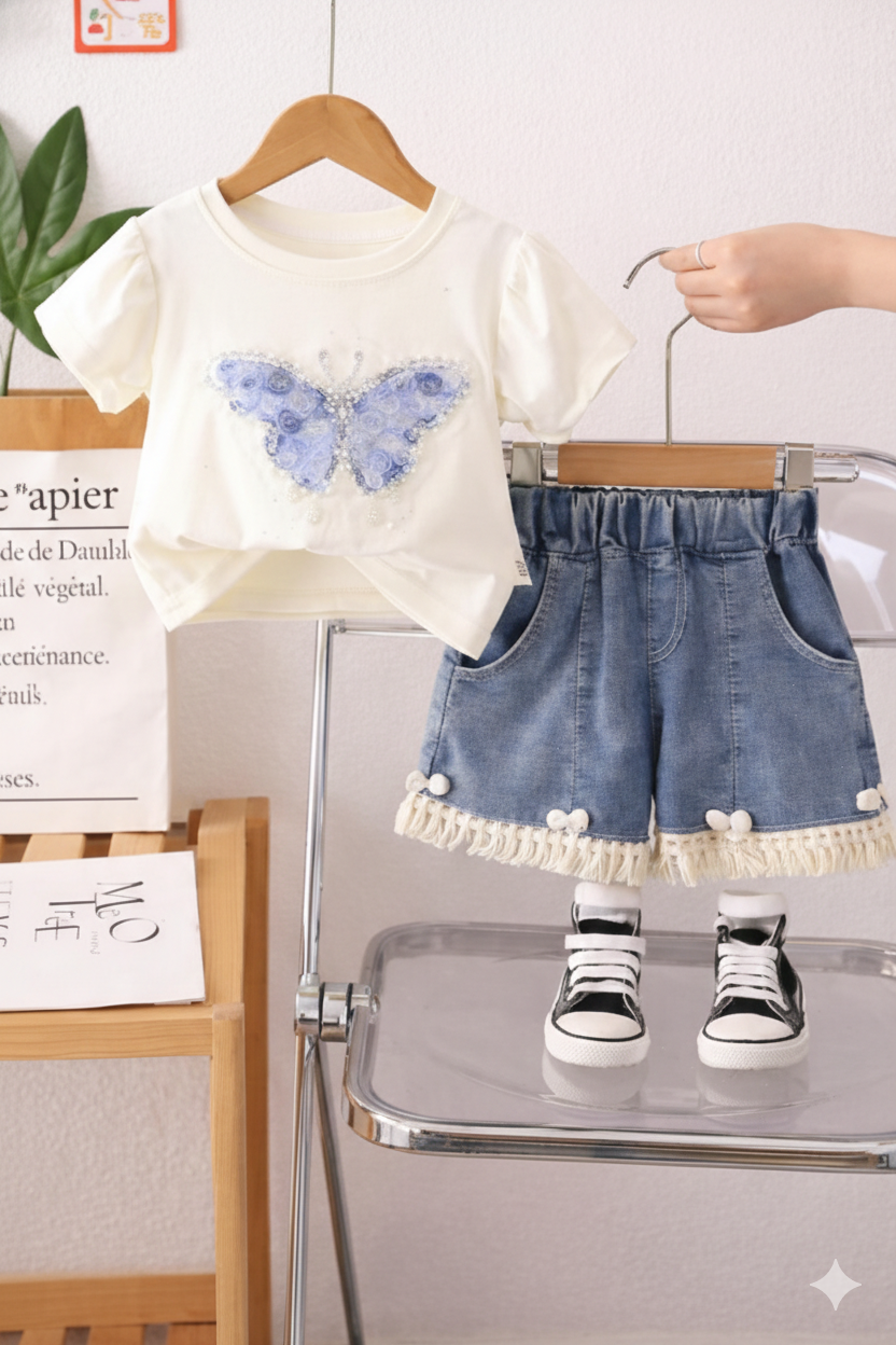 Girl's Imported Blue Butter Fly Co-Ord Set [GCS-5003] (1-6 Years)