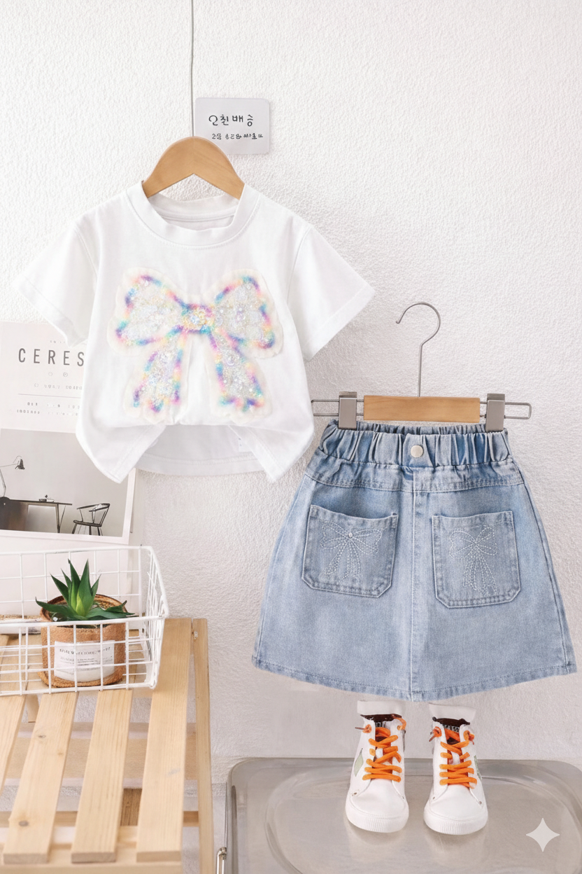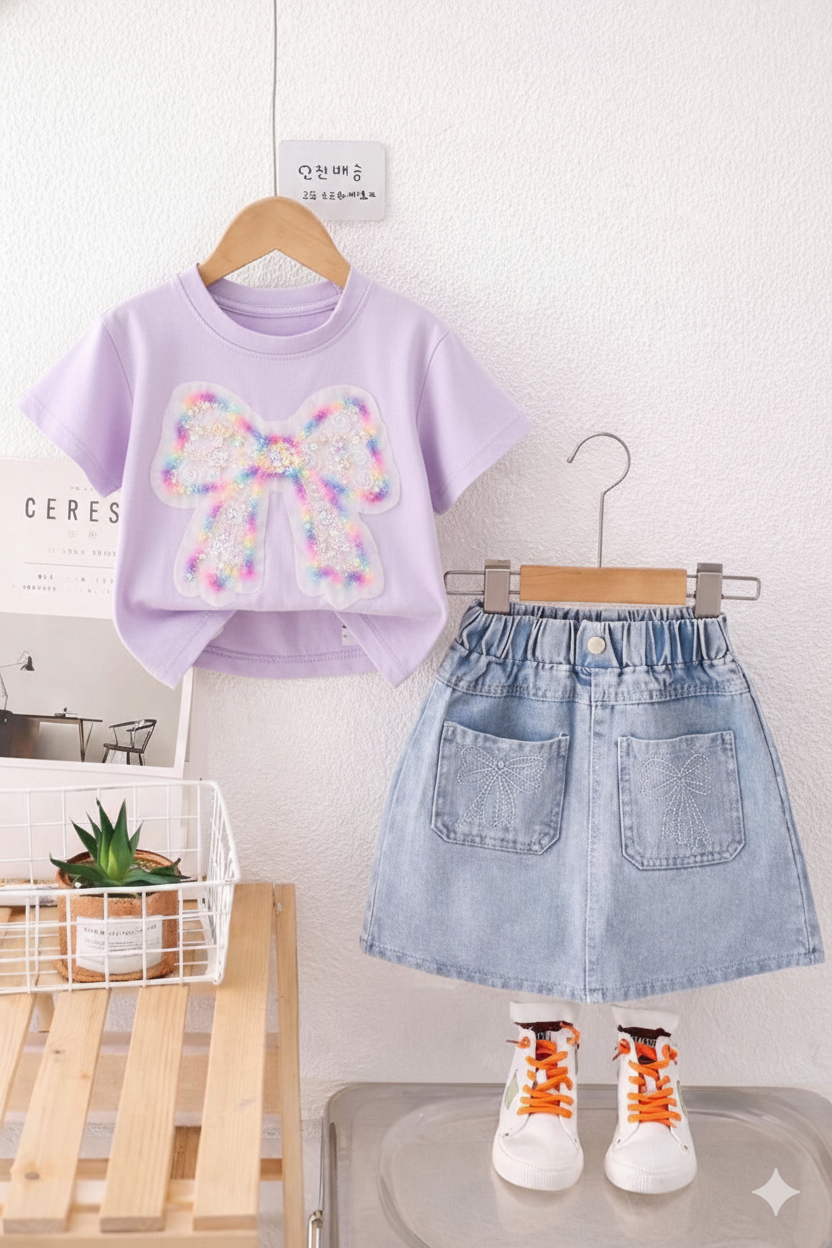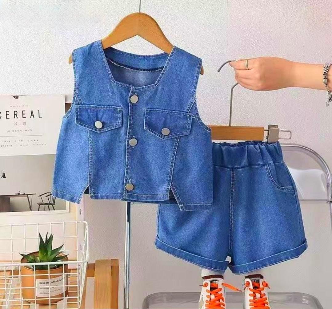 Girl's Denim Light Blue Co-Ord Set [GCS-4995] (3-8 Years)