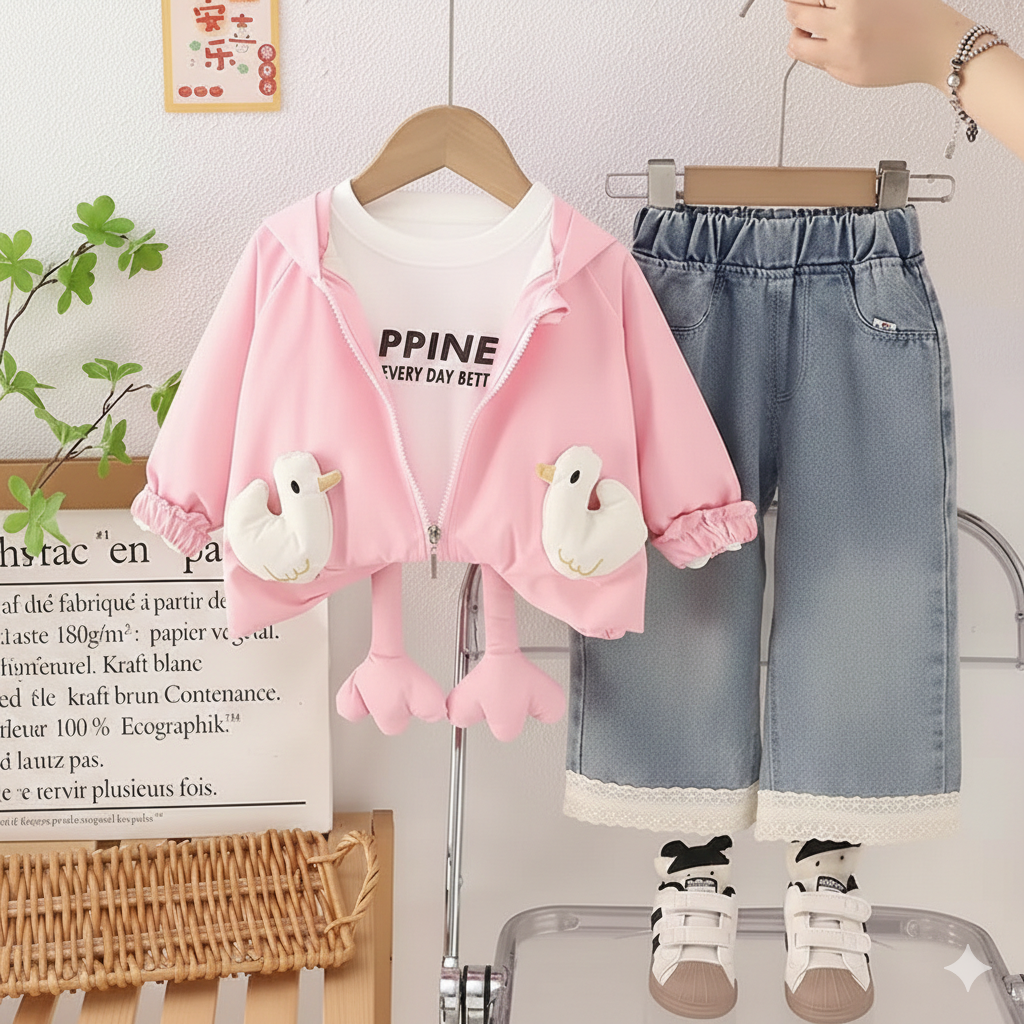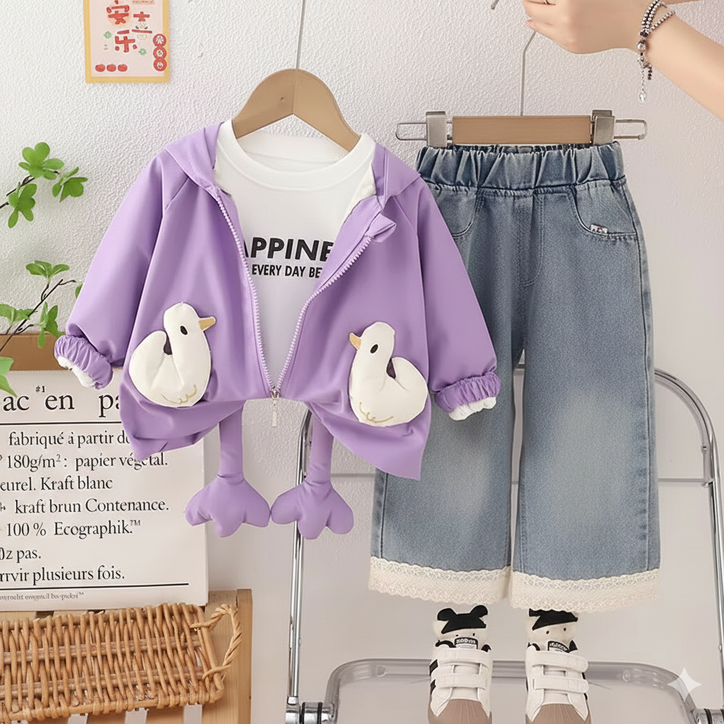 Girl's 3 Piece Imported Hooded Co-Ord Set [GCS-6430] [1 - 5Years]