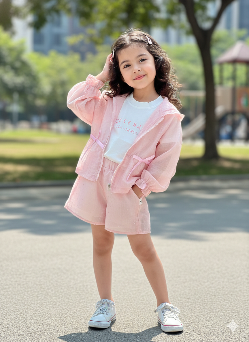 Girl's Imported Pink 3 Piece Co-Ord Set [GCS-5984] (2-6 Years)