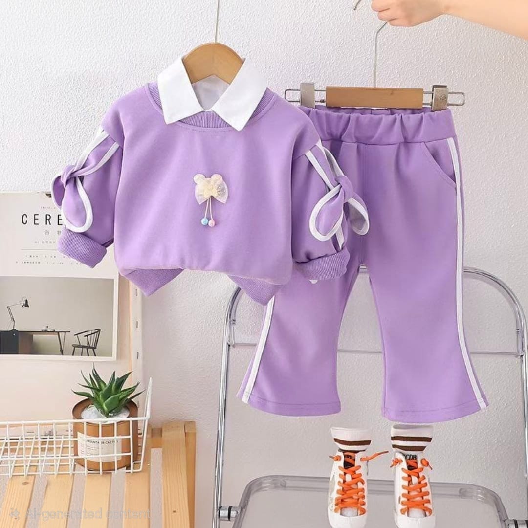 Girl's 3 Piece Imported Lavender Varsity Co-Ord Set [GCS-6425] [1 - 5Years]