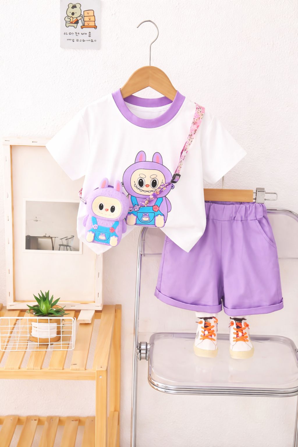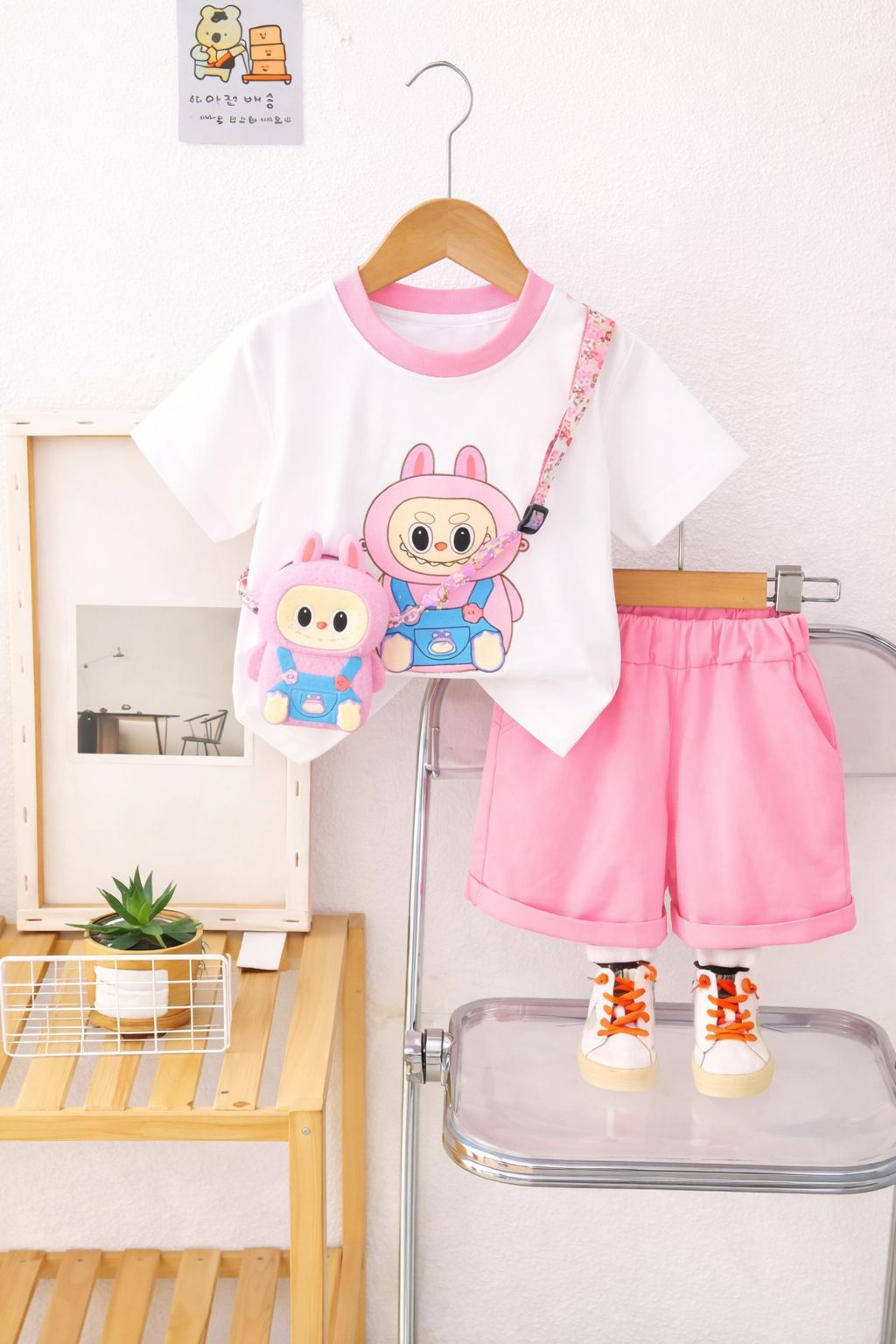 Girl's Imported Co-Ord Set With Labubu Purse [GCS-5012] (2-7 Years)