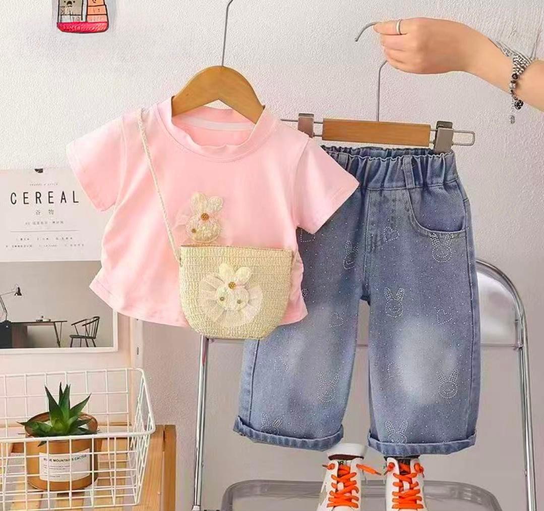 Girl's Imported Piece Co-Ord Set With Bag [GCS-5961] (1-6 Years)