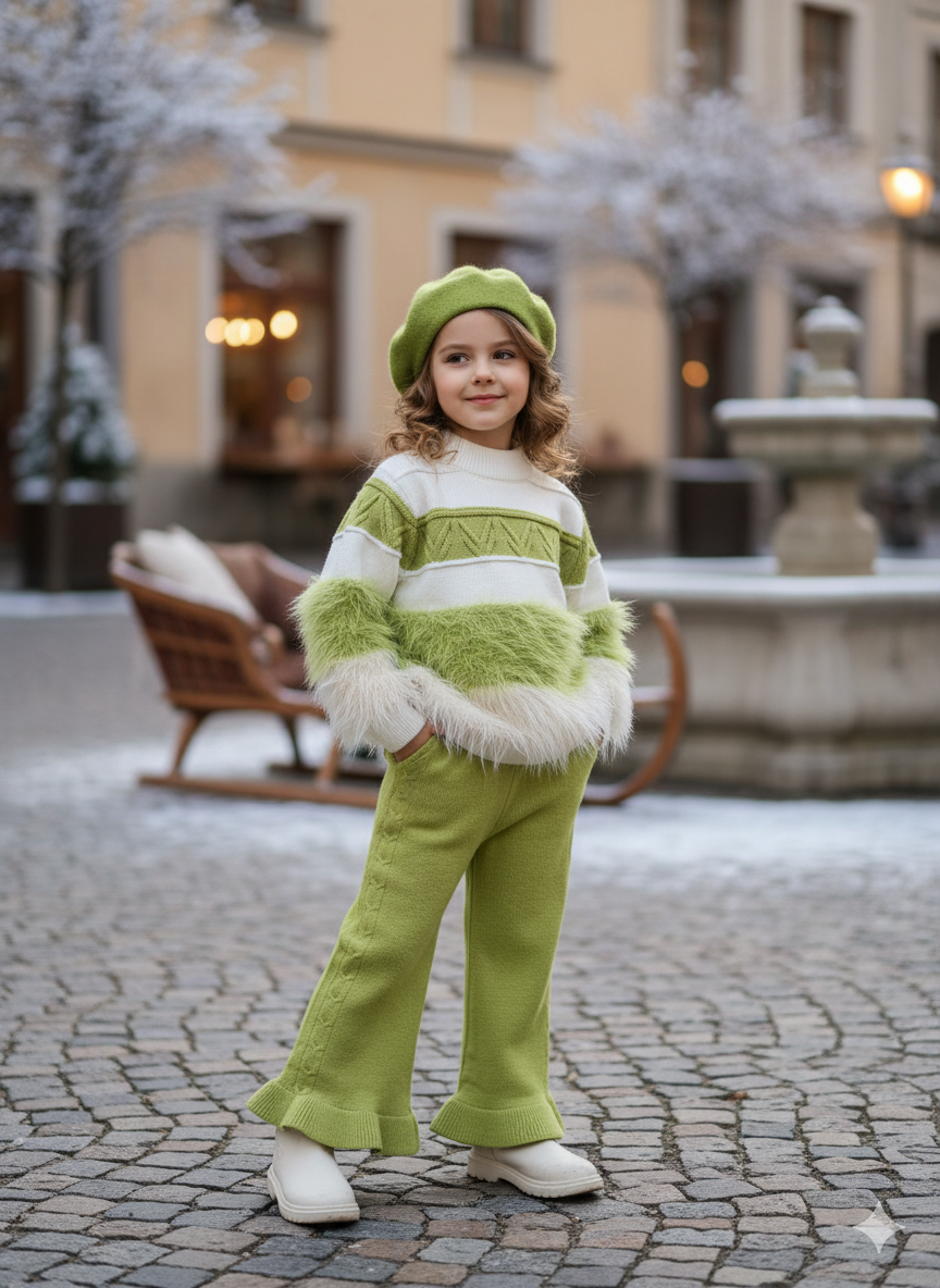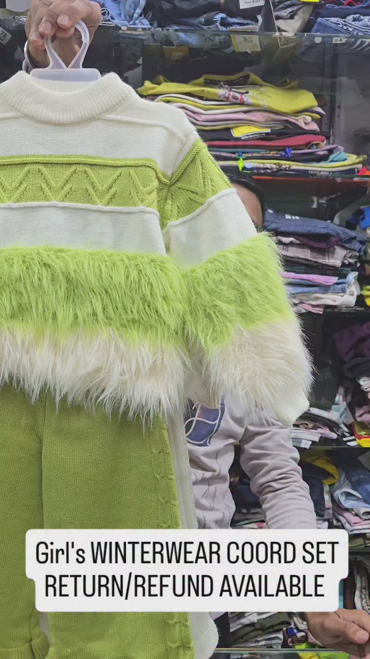 Girls Knitted Co-Ord Set With Faux Fur Detailing (WITHOUT CAP) [GCS-6603](1-6 Years)