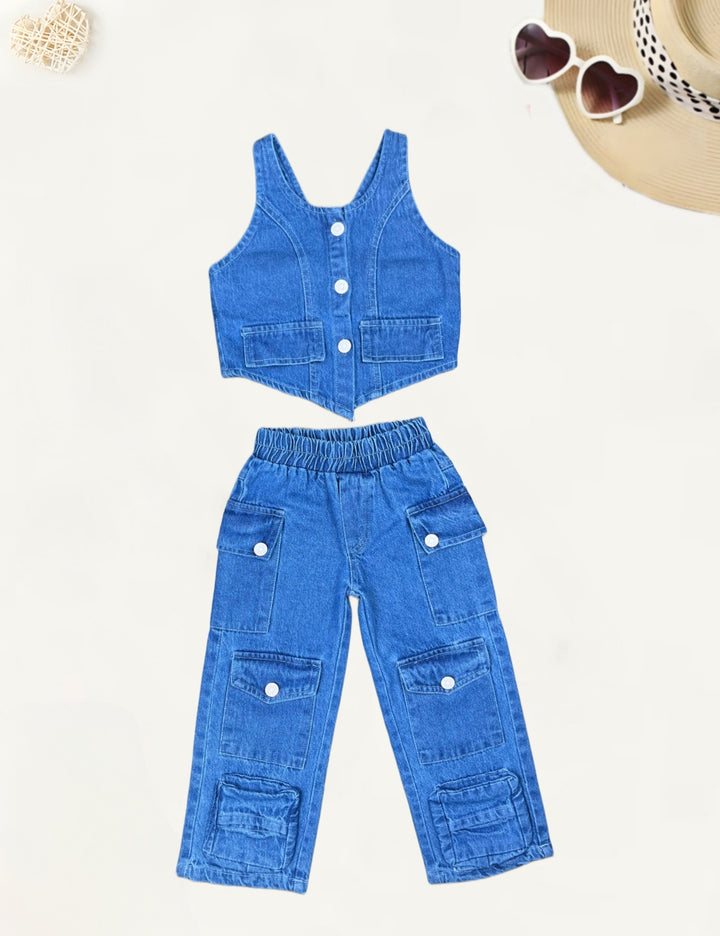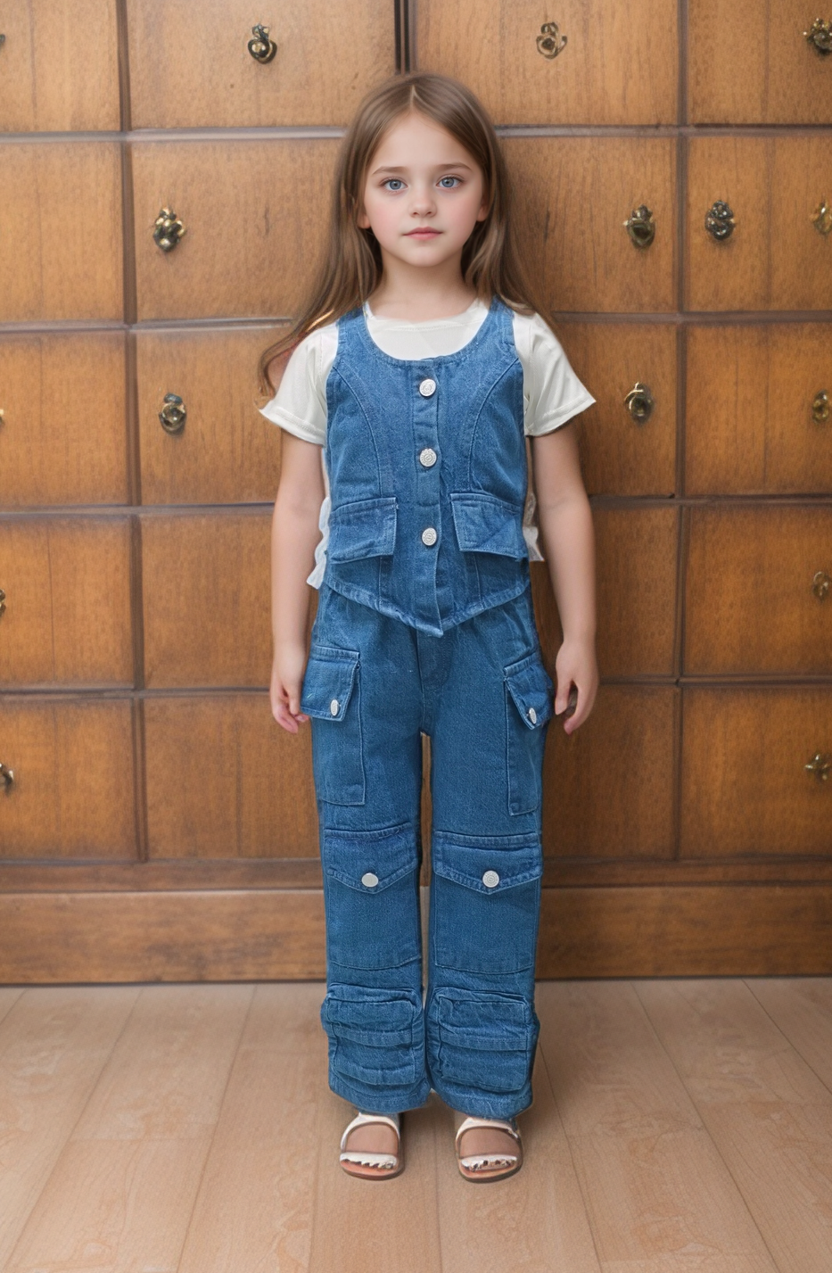 Girls Three Piece Denim Co-Ord Set [GCS-9871] (4-12Years)