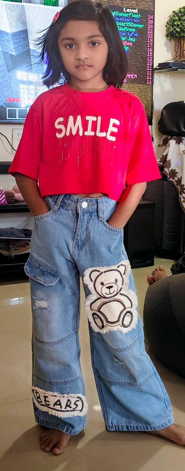These trendy jeans are perfect for your little fashionista. With their Straight leg design they offer a cool and edgy look. The denim material is durable and comfortable, making them ideal for everyday wear. It adds a practical element, allowing your child to carry small essentials while looking effortlessly stylish.